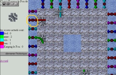 Si deux tuyaux colorés se rencontrent, les points de ces tuyaux sont perdus pour tout le monde (le tuyau resultant est coloré en blanc pour indiquer cela)