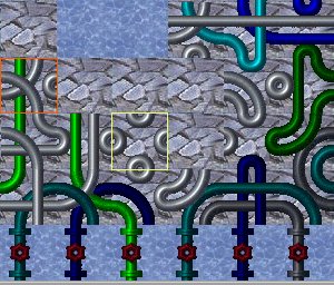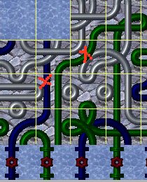 Le tuyau vert foncé marqué d'une croix rouge rapporte 11 points. (la grille a été coloriée en jaune pour plus de facilité)